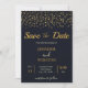 Casamento elegante e personalizado violeta/roxo salve os cartões de data com estrelas douradas confetti. Para mais personalização, clique no botão "Personalizar" e use nossa ferramenta de design para modificar este modelo.