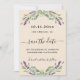 Um moderno e elegante Salve a Data para um casamento. Um fundo bege e colorido, decorado com flores de lavanda e verde de eucalipto. Personalize e adicione uma data e seus nomes. O texto: Salvar a Data é gravado com um script de estilo com letra de tendência grande.
