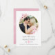 Cartão de aviso de casamento floral em aquarela rosa com flor de cerejeira com moldura geométrica dourada personalizável para os detalhes do seu evento. Recomenda-se uma foto quadrada.