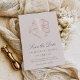Avise os convidados do seu futuro destino, praia ou casamento na ilha tropical com estas belas cartões salve a data de verão com uma ilustração falsa de flor de hibisco de folha de rosa em um fundo rosa-rosa de pincel pastel mole. O roteiro de cinzas escuras e a inscrição em bloco exibem seus detalhes de casamento (nomes, data de casamento, local e site).