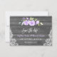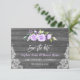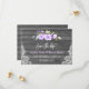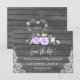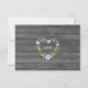 Design único com flores de lavanda em aquarela elegantes, coroa floral em forma de coração com iniciais no verso, tudo sobre um fundo de madeira de celeiro cinza. Use a ferramenta Personalizar para adicionar suas informações. Veja também minha Coleção de Flores de Lavanda.