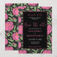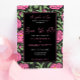 Um Jardim do Amor. Design elegante com padrão de flores cor-de-rosa e caligrafia de tendências em fundo preto. Esta design é perfeita para o seu simples e elegante casamento floral. O texto pode ser facilmente personalizado para um único design único para o seu dia especial.