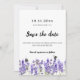 Reserve A Data Casamento de flores roxas de lavanda salvo data