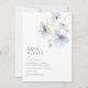 Maravilha elegante e cúbica, com design floral de flores silvestres florais, SAVE A DATA. Pasta azul, cor de água botânica de ouro mole e lavagem. A qualquer hora do ano, perfeito para a época de primavera de verão. Modelos fáceis de editar. Consulte a coleção correspondente 'DANIELLA'