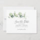 Casamento de Script Eucalyptus Greenery Salve o anúncio de Data que você pode personalizar facilmente clicando no botão "Personalizar" acima