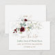 Design elegante com flores em aquarela burgundy, folhas arejadas, eucalipto, folhas de ouro falso, caligrafia moderna de "save the date"; no verso iniciais e arranjo floral. Use a ferramenta Personalizar para adicionar suas informações. Itens correspondentes podem ser encontrados na minha Coleção de Florais Burgundy Arejados e Folhagens.