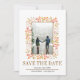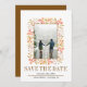 Berries e folhas de casamento outono marrom na fronteira Salve o anúncio Data. A frente deste adorável anúncio apresenta um quadro feito de bagas e folhas, o texto "Salvar a Data" em marrom e sua foto. O dorso é de cor castanha sólida.