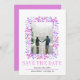 Berries e saem do casamento no inverno roxo da fronteira Salve o anúncio Data. A frente deste adorável anúncio apresenta um quadro feito de bagas e folhas, o texto "Salvar a Data" na lavanda e sua foto. O dorso é de cor roxa sólida.