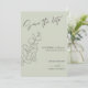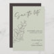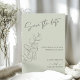 Um casamento de eterno Salve a data com imagens de eucalipto desenhadas à mão sobre um fundo verde leve. O roteiro elegante e as fontes clássicas de serif se combinam para destacar os nomes do casal e os detalhes do casamento. Perfeito para casamentos inspirados na natureza ou minimalistas com um toque romântico.