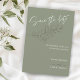 Um casamento de eterno Salve a data com prigos de eucalipto desenhados à mão em um fundo verde sábio. O roteiro elegante e as fontes clássicas de serif se combinam para destacar os nomes do casal e os detalhes do casamento. Perfeito para casamentos inspirados na natureza ou minimalistas com um toque romântico.
