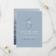 Convite de casamento simples, elegante, minimalista, contemporâneo, moderno e na cor azul poeirento com foto na parte de trás e monograma de e comercial com iniciais trendy - salve a data
