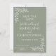 Romântica, simples mas elegante design de folhas e bagas de arte em linha, em um clássico fundo romântico verde de sábio. Um leve e delicado tom de sofisticação. Ideal para uma atmosfera de casamento elegante. elegância clássica na frente com uma mistura de luz de fontes brancas brancas e letras fortes em negrito. Na parte de trás, a design de folhas e bagas continua onde você pode adicionar sua foto mágica favorita e onde você pode manter o texto que está lá ou você pode adicionar seu próprio e, claro, a data do casamento. Um lembrete perfeito da data mágica que virá. Se precisar de ajuda para fazer deste item, por favor, envie-me um e-mail em designsbykatz@gmail.com e eu gostaria de ajudar. Parabéns no seu grande dia.