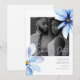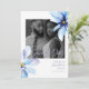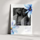 Elegante design floral com script de estilo manuscrito moderno, foto branca preta quadrada e azul-d'água Flores sobre fundo branco.O texto e a foto podem ser facilmente personalizados para um único design único para seu dia especial.
