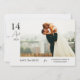 Este simples e na moda, casamento de fotos moderno, salve o cartão de data, modelo, apresenta seus nomes e data, juntamente com sua foto na frente. O texto em ambos os lados é preto por padrão, mas você pode alterar isso se preferir. Em ambos os lados, definimos o fundo como transparente para permitir que a cor do papel sirva simplesmente como tom base. Você pode mudar isso facilmente em um ou em ambos os lados, escolhendo uma das cores básicas nas ferramentas de edição ou digitando um número de cor se você tiver uma matiz específica em sua pesquisa, ou olhando para a ferramenta de espectro de cores e escolhendo algo à vista. Além de alterar a cor do texto, você também pode alterar qualquer fonte ou tamanho do texto. Use as ferramentas intuitivas de edição e design, sua foto favorita e sua inspiração para fazer com que este casamento de fotos simples salve o cartão de data exclusivamente seu!