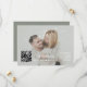 Design de cartão elegante com uma ou duas das suas belas fotos, código QR para que os convidados possam responder e encontrar todos os detalhes online, caligrafia moderna em fundo verde sage. Use a ferramenta Personalizar para adicionar suas informações e substituir as fotos pelas suas. Itens correspondentes podem ser encontrados na minha Coleção Boho Verde Sage.