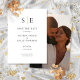Este cartão chic de save-the-date para casamento minimalista pode ser personalizado com as iniciais do seu monograma e detalhes do dia do casamento. Com sua foto especial no verso. Criado por Thisisnotme©