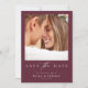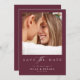 O Elegante Burgundy Photo Wedding Save The Date apresenta um design chic, minimalista que mostra maravilhosamente sua foto favorita contra um rico pano de fundo, aliado à caligrafia na moda. A sua estética simples, mas moderna, oferece um toque de charme de vô, e é totalmente editável combinar com a sua visão — sinta-se livre para alcançar se precisar de assistência!