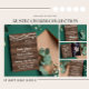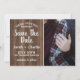 Uma foto incrível salve a data que é acentuada com um design de madeira em prancha e fontes brancas. Coordena-se perfeitamente com a coleção de casamento Rustic Charm.