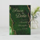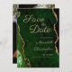 Elegante salve o cartão de data com emerald green marble agate com foto de casamento dourada, salve o cartão de data. Foto do casal no verso. Anuncie seu dia especial com nosso Emerald Green & Dourado Agate Salve o cartão de Data. A frente apresenta uma impressionante design de emerald verde e dourada inspirada na pedra. A parte traseira da placa apresenta uma foto do casal. As cores ricas e os detalhes da gemstone estabelecem um tom inesquecível, enquanto a foto pessoal no verso permite que os entes queridos compartilhem seu entusiasmo desde o primeiro olhar.
