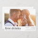 Avise aos seus hóspedes que estão por um excelente de tempo com o nosso divertido e na moda "Bebidas Grátis e um Casamento ao Lado" Salve o cartão Data. Apresentando um design de tipografia simples, preto e branco, este cartão faz uma declaração ousada com um toque de humor. Personalize-o com a sua foto favorita para adicionar um toque pessoal que é exclusivamente seu. Perfeito para casais que querem dar um tom divertido e sem preocupações para o seu grande dia.