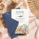 Casamento de flores silvestres do campo salve o cartão de data com sua foto de noivado e uma borda colorida de flores silvestres em tons de rosa, amarelo, azul e branco. Flores russas, elegantes estilos e uma paleta colorida multi-temporais combinam-se, extraindo encanto sem esforço. A tapeçaria de cores neste bonito design floral complementará as configurações de casamento de fazendas a jardins boêmicos informais. Para coordenar convites, artigos de papelaria, jogos e decoração do dia do evento, por favor, navegue na minha coleção de casamentos de flores selvagens do País ou envie-me uma mensagem para adicionar quaisquer itens adicionais de que necessite.