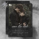 Este casamento salvou a design do cartão de data apresenta um tema escuro e modesto que é simples, mas impressionante. Um fundo de damasco floral de padrão floral preto de folha preta é a canvas perfeita para sua foto de casal favorita. Os detalhes simples aparecem em texto branco sobre o fundo escuro. Único e elegante, este design pode ser usado em qualquer estação. Criado pela imprensa simplesmente de farmácia.