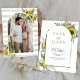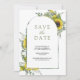 Amaze seus hóspedes com esta elegante, exceto a data com lindos girassóis e folhas de eucalipto. Basta adicionar os detalhes do seu evento neste modelo fácil de usar e enfeitar este cartão com a sua foto favorita para torná-lo um cartão de data única.