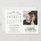 Este belo casamento Salve o Cartão de Data apresenta um design bólus rústico com um aglomerado de folhas de cor d'água pintadas manualmente e verde-verde em tons de menta, musgo e sábio. O lado esquerdo do cartão é um calendário que você pode personalizar com um coração à volta da data do seu casamento. Há espaço para sua foto, o nome do casal e a localização do casamento. Elegante, na moda e chic, este cartão é uma forma excelente de deixar seus amigos e família saberem salvar a data do seu dia especial.