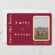 Esta fotografia elegante e moderna salva a data convite Features a vibrant burgundy background, this request is a message. A na moda mostra uma fotografia de casal romântica num arco, com uma tipografia de ouro de luxo. A tipografia adiciona um toque de sofisticação e desenhar o olho à bela foto do casal. Personalizável para atender às suas necessidades específicas, este convite é a maneira perfeita de anunciar seus futuros núpcias em estilo. Não se contente com um convite sem graça e chato - faça uma declaração com esta bela foto, salve a data.