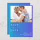 Casamento moderno salve as datas em um design de palmeira azul inspirado na praia com sua foto personalizada, perfeita para seu casamento na praia. Se precisar de ajuda para tirar a foto ou quiser mais personalização, entre em contato comigo através da loja. Eu adoraria ajudar.