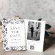 Casamento Floral Elegante Preto e Branco Salve a data com sua foto (filtro preto e branco automático aplicado) e Código QR no verso.