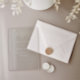Espessura de 18 pt / Gramatura de 120 lb. Branco suave, textura delicada.
