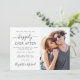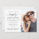 Casamento moderno salve o anúncio de data com sua foto e "Feliz Sempre Depois" em uma mistura de simples tipografia e um roteiro de na moda com baloiços. Personalize os detalhes da data e adicione seus nomes em um script semelhante a assinatura. No verso, seus nomes e a data do casamento estão unidos por um coração.
