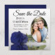 Estas belas cartões salve a data são a maneira perfeita de deixar seus amigos e família saberem sobre seu próximo casamento. Eles apresentam um design floral que é moderno e elegante, com um rosa azul marinho, de solteiro longo, que reflete numa piscina de água com ondas e ondulações com a sua foto em forma oval, sobre um fundo branco clássico. A legenda: Salvar a data com espaço para seus nomes, data e local. O dorso é uma cor azul escura marmoreada.