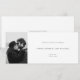 Essa elegante e simples gravação horizontal da placa de data apresenta sua foto de escolha e texto mínimo. Personalize o texto e as cores na frente e atrás com seus próprios nomes, data, local do casamento e informações do casamento. Este convite horizontal para salvar a data sai da multidão dos cartões de tamanho padrão habituais.
