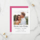 Foto simples e elegante, salve a data com sua melhor foto de noivado sobre um fundo branco. Cartão invertido para cor rosa sólida, totalmente alterável para o ajustado do seu casamento ou esquema de cor de foto. Personalize com seus nomes, data do casamento e local.