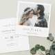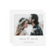 Este simples casamento de fotos quadrado chic salve a modelo do cartão de data com uma design elegante, minimalista e moderna. Procure por versões deste design em formato retangular em formatos de cartão plano, cartão postal e ímã em várias cores! A frente apresenta seus primeiros nomes sob sua foto favorita e uma mensagem 'salvar a data' veiculada em preto com uma combinação impressionante de duas fontes distintas, com 'o' em um script luminoso e fluente entre o resto da mensagem, que é em maiúsculas com uma aparência formal arrojada e nítida.Este elemento design está incluído em ambos os lados e não pode ser alterado, embora você possa optar por apagá-lo na parte de trás para uma aparência ainda mais simples. E no verso você pode, claro, além de substituir nossas informações de exemplo por suas próprias, excluir campos de texto que você não precisa, ou mudar o texto, bem como mudar a fonte, o tamanho e a cor. A cor padrão dos seus nomes na parte frontal é preta, e a parte traseira inclui texto em preto e também um preto ligeiramente suavizado. A cor de fundo padrão em ambos os lados é definida como transparente, para permitir que a cor do papel sirva simplesmente como tom base. Mas você pode editar isso e mudar a aparência de um ou de ambos os lados nesse aspecto, bem como para se adequar ao seu estilo. Personalize este casamento elegante e minimalista, salve o modelo de cartão plano com as ferramentas intuitivas de edição do zazzle, a sua foto favorita e a sua inspiração e torne-a exclusivamente sua!