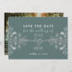 Vintage Elegante casamento verde LPsage guarde o convite de data com foto atrás, simples corda prateada e um lugar floral dourado.
