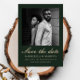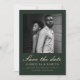 Um casamento de fotos verde-escuro elegante salva o anúncio da data. Por favor, veja esta coleção de casamentos de chic para coordenar convites de casamento e opções de cores modernas adicionais.