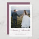 Este casamento elegantemente clássico com uma foto roxa salva o anúncio da data com uma design minimalista chic com tipografia clássica e bonito escrita caligráfica. Compre esta bela coleção de casamento para coordenar convites para casamento, e opções de cores modernas adicionais.