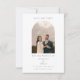 Esse mínimo de salvamento do cartão de data apresenta um modelo de foto em forma de arco, juntamente com fontes elegantes serif, script e sans serif para uma aparência clássica e chic. Perfeito para um sofisticado casamento temático preto e branco. Personalize esta modelo com seus nomes, data especial e local do casamento.