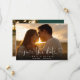 Esta elegante foto de script de coração salva a data card contém sua foto e um script que salva a data acima de seus nomes, data e local. O reverso apresenta uma foto e mensagem adicionais em um fundo verde esmeralda. Projetado por Thisnotme©