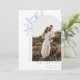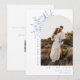 Um casamento moderno salve o anúncio da data com sua foto favorita em um arco com uma linha azul traçada por trás do arco. Adicione o seu website de casamento Código QR ao contrário.