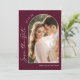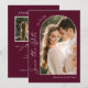 Enche os convidados do casamento animados para o dia especial com este burgundy moderno, duas fotos, para salvar o cartão de data. Apresentando um design de arco com vibrações boho, este cartão é perfeito para mostrar duas fotos incríveis de você e seu parceiro e é garantido que seus convidados ficam animados pelo grande dia. Então, faça uma declaração com esse único cartão de data e deixe o planejamento do casamento começar!