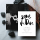 Faça uma declaração com o nosso Esquadrão Negra Negra Negra Negra Negra Negra Branca. Salve a Data. Apresentando uma tipografia impressionante de pincel preto contra um cenário limpo e minimalista, esta design é perfeita para casais que querem mostrar seu estilo único e moderno. As letras ousadas e artísticas acrescentam um toque ousado, enquanto o traçado elegante o mantém chique e sofisticado. Totalmente personalizável com seus detalhes de casamento e foto personalizada no verso, esta opção Salvar a Data garante que seu grande dia seja anunciado de uma forma tão ousada e inesquecível como sua história de amor.