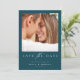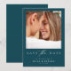 Anuncie seu dia especial com nosso "Casamento de Foto Elegante Turquesa Salve o Cartão de Encontro". Sua design branca e preta irradia elegância, complementada pela elegante caligrafia moderna. Carregue uma foto querida de você e seu futuro cônjuge para torná-la pessoal. Com textos personalizáveis e textos editáveis e cores de fundo, você pode personalizá-los facilmente para corresponder ao seu evento, criando um anúncio de casamento verdadeiramente único que captura a essência do seu amor e celebração.