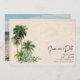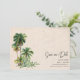 Foto do design da árvore de palmeiras de aquarelas salve as datas do seu casamento de destino de praia na Flórida! Compartilhe sua foto de noivado favorita e seus próximos detalhes de casamento com a família e amigos com este casamento de praia moderno, salve as datas.