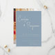 Ponha o tom para o seu casamento com este belo moderno salve o cartão de data com o roteiro escrito à mão em Dusty Blue e a sua foto no verso.