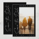 Casamento de Foto em Branco e Preto Moderno Salve o Cartão de Data. Estipulosamente anuncie seu casamento com esse clássico, elegante preto e branco, roteiro, cartão de salvamento do casamento fotográfico, com uma linda foto da frente, que você pode personalizar, sobre um fundo preto comum, com uma fonte na moda branca tipográfica sobre o topo, e novamente repetida na parte de trás do cartão. Este cartão moderno e clássico de salvamento do casamento dá uma sensação elegante e mínima, perfeita para qualquer casamento preto e branco, simples, minimalista. Este elegante cartão de salvamento do casamento de fotos em preto e branco irá dar o tom para qualquer cenário clássico e mínimo de casamento cercado por flores negras ou brancas, e combinando decoração de casamento de cor neutra. Uma adição perfeita a qualquer celebração de casamento simples e minimalista. O Coletivo de Domingo © por Rachel Hannah Gee