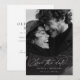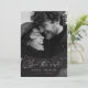 Este Simples Casamento de Foto de Script Elegante Salve a Data apresenta uma foto em preto e branco do casal, capturando um momento de amor e felicidade. O elegante guião manuscrito adiciona um toque de romance, enquanto o layout minimalista garante uma apresentação moderna e elegante.